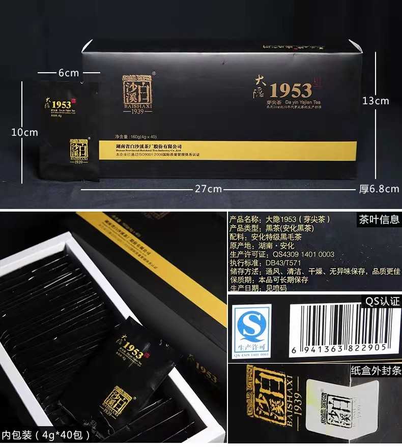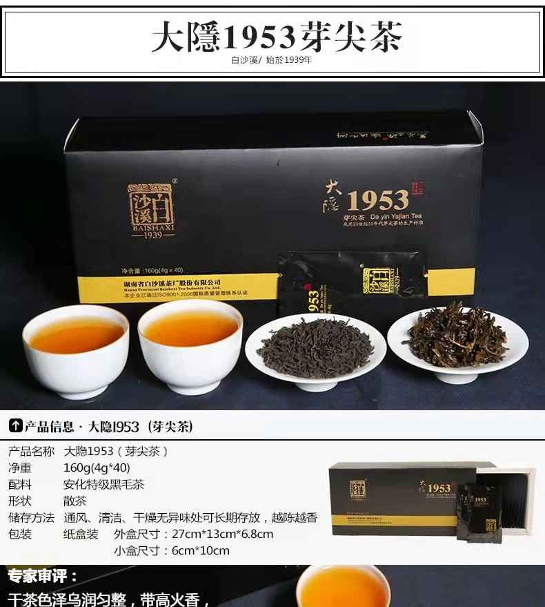 • 湖南安化黑茶正宗白沙溪正品散茶便攜大隱1953特級(jí)芽尖160g直泡黑茶