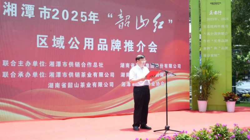 5月30日,湘潭市2025年“韶山紅”區(qū)域公用品牌推介會暨“韶山紅”品牌運(yùn)營中心、集團(tuán)合作茗茶湘潭店開業(yè)儀式在湘潭·供銷時(shí)代隆重舉行。湖南省供銷合作總社黨組成員、理事會副主任張軍,湘潭市人民政府副市長陳愛民及市各級政府和行業(yè)協(xié)會領(lǐng)導(dǎo)、企業(yè)和經(jīng)營業(yè)主代表,湖南省茶業(yè)協(xié)會會長、集團(tuán)黨委書記、董事長周重旺,湖南農(nóng)大、湖南省茶業(yè)協(xié)會、茶葉學(xué)會、茶葉研究所、茶葉品牌建設(shè)促進(jìn)會、紅茶產(chǎn)業(yè)發(fā)展促進(jìn)會等相關(guān)院校、協(xié)會組織的專家、領(lǐng)導(dǎo),集團(tuán)總部及韶山茶業(yè)等相關(guān)企業(yè)負(fù)責(zé)人及新聞媒體共計(jì)300余人出席活動。