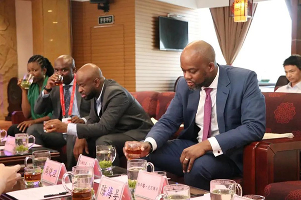 瓦姆凱萊·凱貝斯韋·梅內(nèi)代表非洲大陸自貿(mào)區(qū)秘書處感謝省茶業(yè)集團精心組織的參觀,特別安排的茶藝表演和茶葉品鑒,對該集團在各個領域取得的成就及在貿(mào)易領域取得的經(jīng)濟效益致以祝賀。他表示,非洲政府對茶產(chǎn)業(yè)的關注和重視不斷提高,越來越多的隊伍投身到茶產(chǎn)業(yè)振興當中,非洲大陸人口眾多,到2025年預計達到全球人口的四分之一,市場潛力巨大,中國和非洲大陸的經(jīng)濟往來將會更加頻繁,中國的茶葉出口公司和非洲的茶葉種植出口公司也會因為非洲人口的增長得到巨大發(fā)展。他希望,在非洲自由貿(mào)易區(qū)的帶領下,能夠深化湘茶集團與非洲茶葉貿(mào)易企業(yè)的交流與合作,湘茶集團的產(chǎn)品能夠在非洲暢銷,中非之間的貿(mào)易能夠更上一層樓。