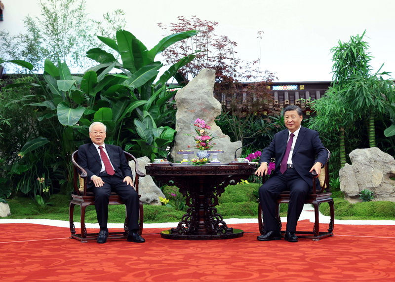 習(xí)近平指出,中越是山水相連、唇齒相依的好鄰居、好朋友,是志同道合、命運(yùn)與共的好同志、好伙伴,是致力于人類和平與進(jìn)步事業(yè)的命運(yùn)共同體。在兩國(guó)推進(jìn)社會(huì)主義現(xiàn)代化建設(shè)征程上,中國(guó)共產(chǎn)黨愿同以阮富仲總書記為首的越南共產(chǎn)黨一道,傳承好毛澤東、胡志明等兩黨兩國(guó)老一輩領(lǐng)導(dǎo)人親手締造和精心培育的傳統(tǒng)友誼,共同引領(lǐng)中越關(guān)系取得更大發(fā)展。