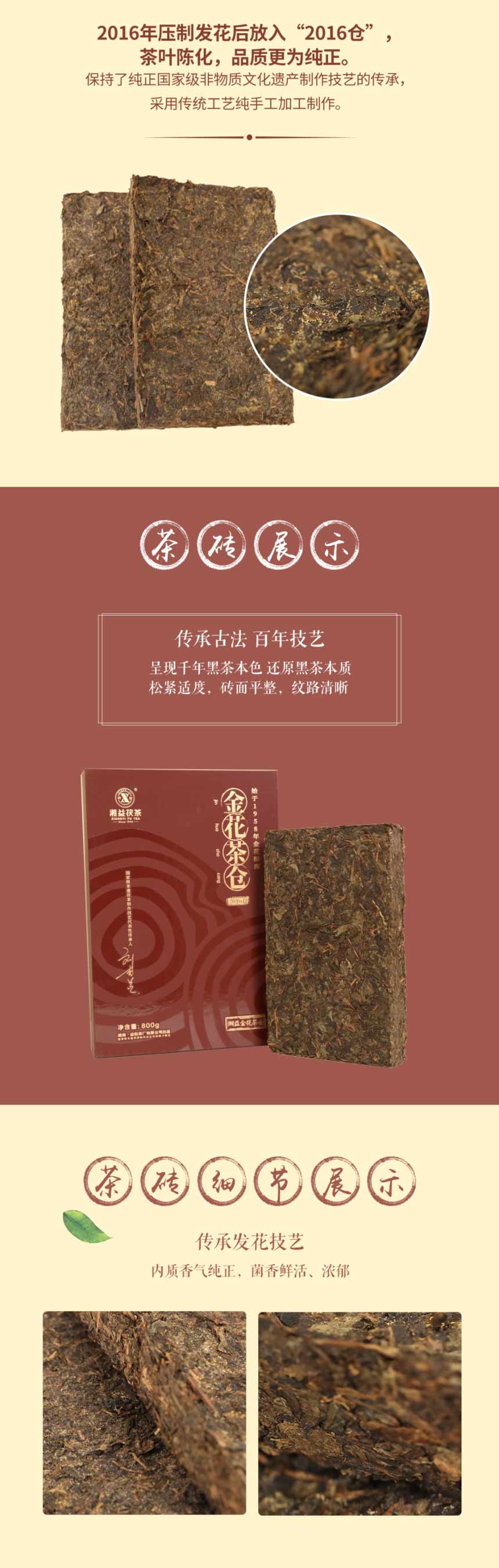 湖南正宗安化黑茶湘益金花茶倉2016年獲磚茶2kg